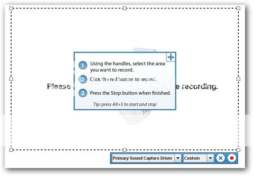 Lựa chọn các chế độ ghi toàn màn hình hoặc theo vùng tùy chọn, có bao gồm âm thanh và webcam hay không: