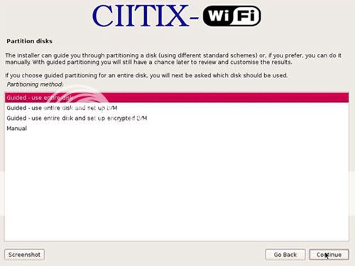 Tải file ISO download bên trên về máy tính, ghi ra đĩa CD và boot từ đĩa đó. Lưu ý rằng quá trình cài đặt và thiết lập này sẽ xóa toàn bộ dữ liệu trên ổ cứng.
