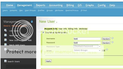 management > user > new user, điền username và password tùy chọn. Chọn loại mật khẩu tương ứng là