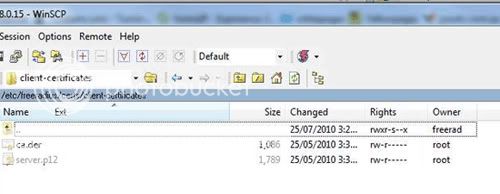 - Và bây giờ chúng ta cần xác nhận 1 bản copy chứng nhận - certificate để các máy trạm sử dụng khi đăng nhập. Khởi động WinSCP và trỏ tới /etc/freeradius/certs/client-certificates. Tại dây bạn sẽ thấy 2 file tại đây, copy 2 file này ra desktop (các bạn nên lưu lại 2 file này vào thiết bị lưu trữ USB nào đó để sử dụng trên các máy trạm sau này):