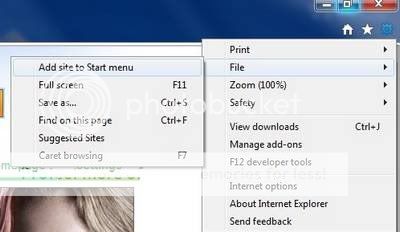 Ngoài ra, thay vì lưu ở taskbar, bạn cũng có thể kéo và thả tab đang mở của trang web trên IE9 và Start Menu để lưu trang web. Hoặc bạn chọn Tools (biểu tượng góc trên bên phải cửa sổ IE9) -> File -> Add Site to Start Menu.