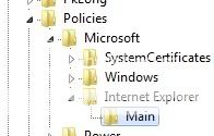 - Kích tiếp chuột phải vào khóa Internet Explorer vừa tạo, chọn New -> Key và đặt tên cho khóa mới là Main . Sau khi khởi tạo, các khóa registry sẽ có dạng như hình dưới đây.