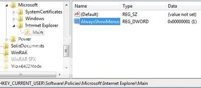 Khôi phục thanh menu trên IE9: