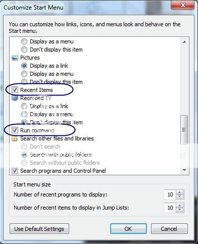 Trong Windows 7 bạn có thể thấy lệnh “Run” và “Recent Items” không xuất hiện trong menu Start. Tuy nhiên nhiều người lại rất thích có chúng ở đây. Recent Items sắp xếp các shortcut cho các tài liệu, ảnh, video hay các file mà bạn truy cập gần đây, giúp bạn có thể truy cập các file này một cách dễ dàng trong lần mở tiếp theo.